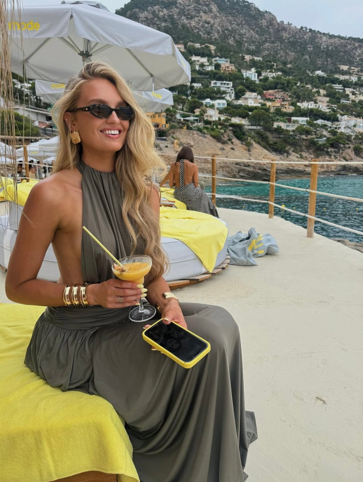 Introducing Santina, a draped silhouette crafted for ease and versatility. Made from a slinky khaki drape, she features a timeless halter neckline and a low-set waistband to anchor. The dress softly drapes over the body with gentle gathers, finishing effortlessly floor-length. Complete with a sensual open back and a ruched centre detail, Santina is made for warm nights and confident moments.